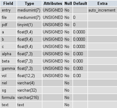 The fields 'a', 'b', 'c', 'alpha', 'beta', 'gamma', 'vol' (= volume),