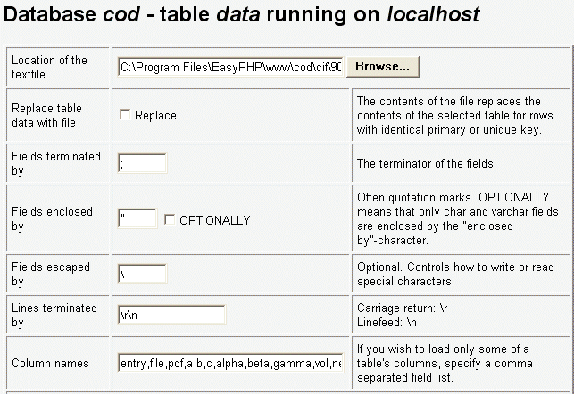 Querying the COD is made by HTML forms and PHP scripts which directly connect